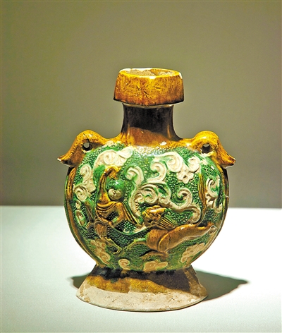 洛阳博物馆藏唐代三彩驯兽纹扁壶